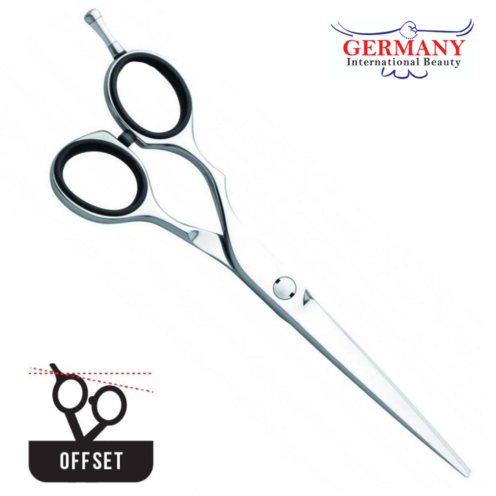 The German Gold Line Diamond E Offset Left-Hand Scissors are premium professional hair cutting scissors designed for left-handed stylists. Crafted with precision by Jaguar Germany, these scissors deliver exceptional performance and comfort.