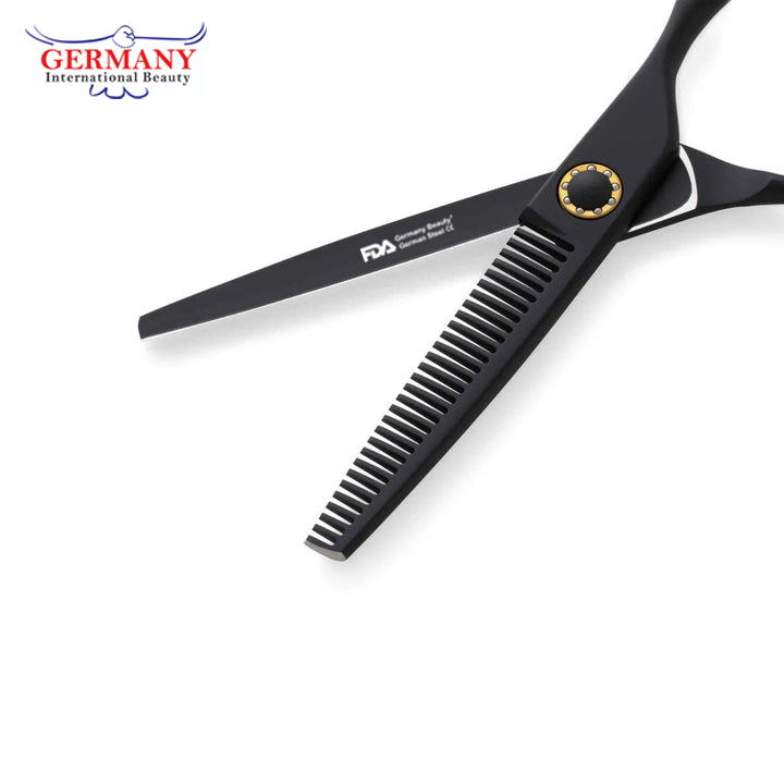 The German Matte Black Master Set is the ultimate collection of professional hairdressing scissors, combining versatility and quality in a sleek, matte black finish. This comprehensive set includes multiple sizes of cutting scissors and a specialized thinning scissor, providing everything a master stylist needs for precision cutting and texturizing.